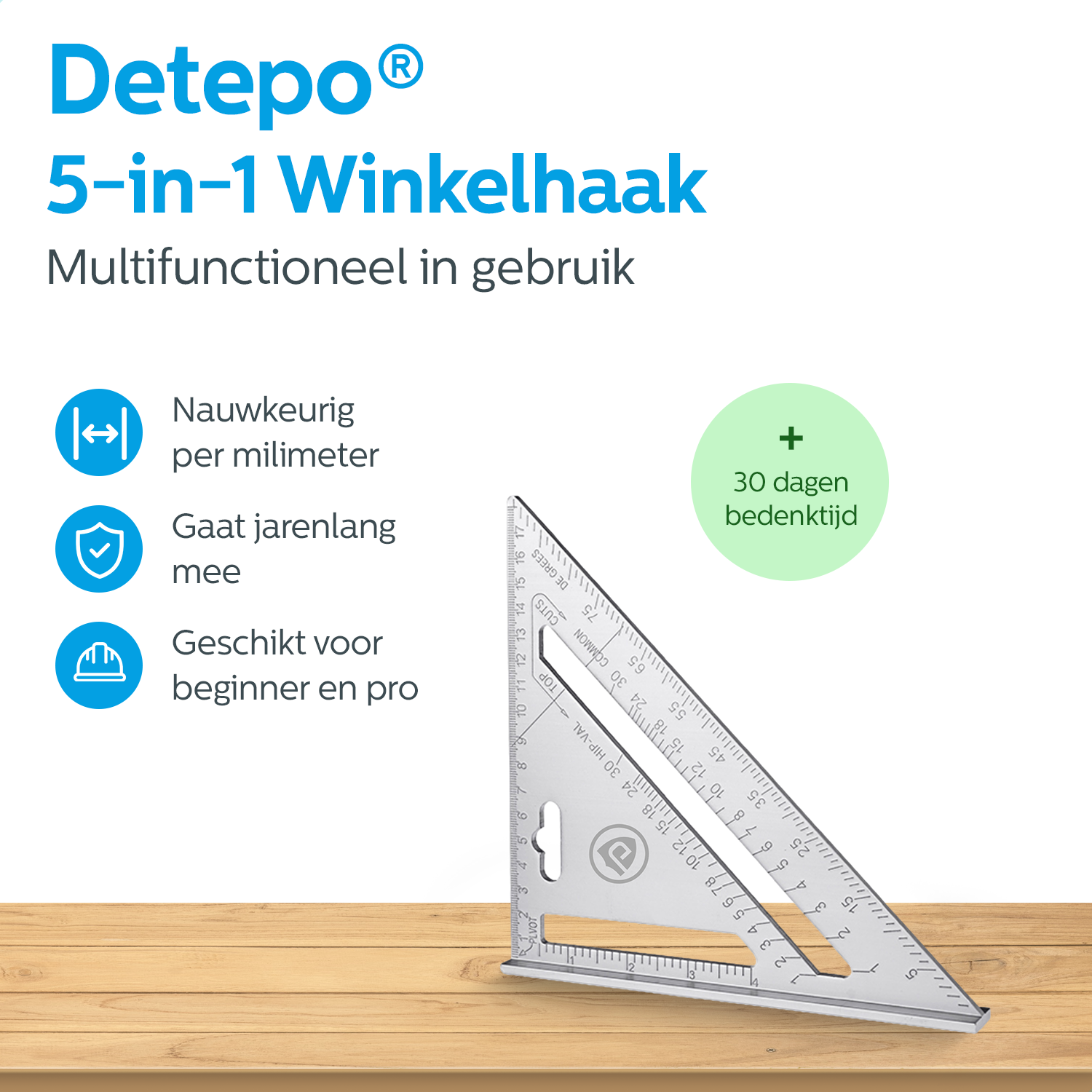 Deze winkelhaak mag niet ontbreken in de gereedschapskist van elke doe-het-zelver of professional. Dankzij het 5-in-1 ontwerp gebruik je hem als winkelhaak, graden driehoek, meet driehoek, liniaal, blokhaak en zaaggeleider. Perfect voor meten, markeren, tekenen en zagen.