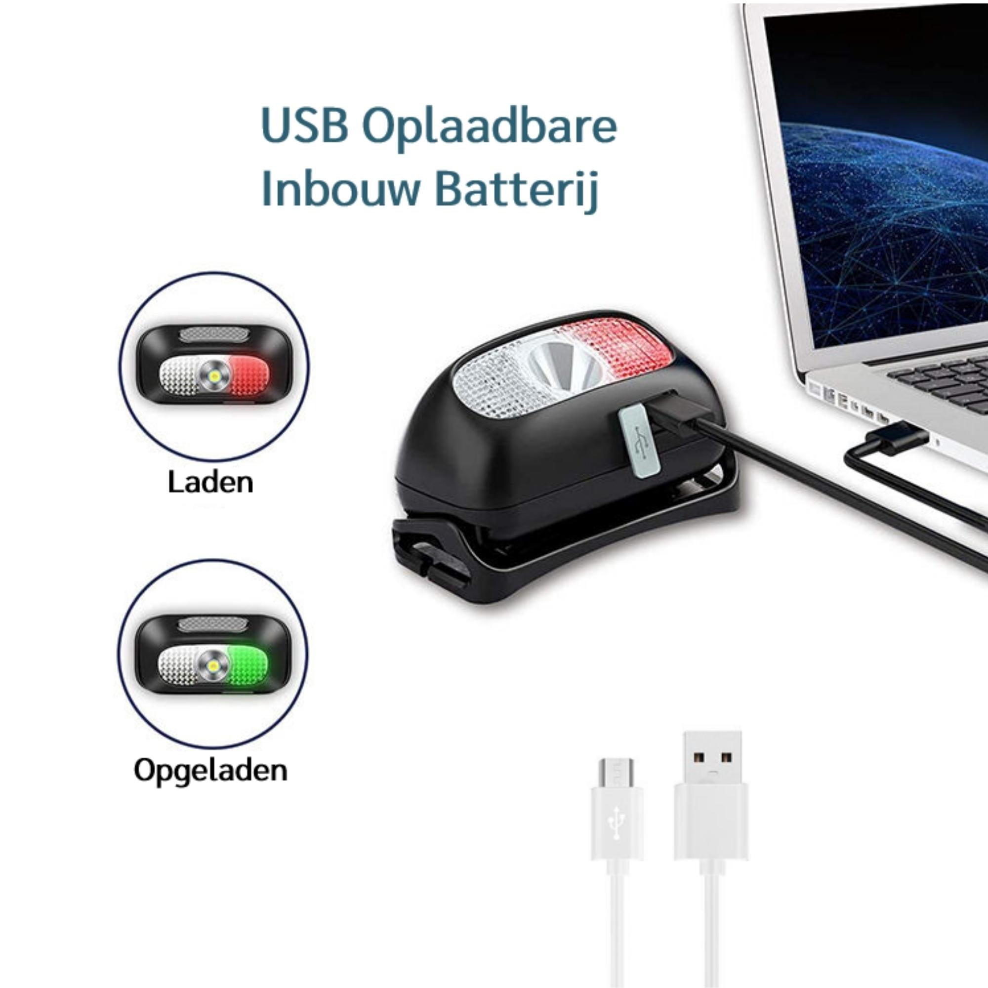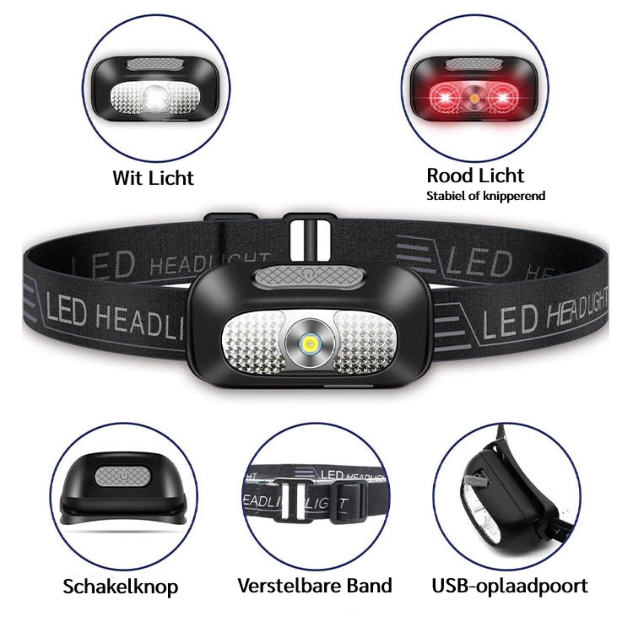 Hoofdlamp Led Oplaadbaar - 5 Lichtstanden met Wit en Rood Licht - Waterdicht en Verstelbaar - Voor Hardlopen en Klussen